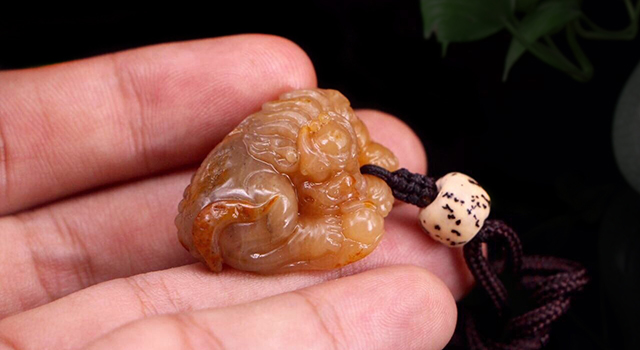 (已讓)壽山田黃石-滾獅戲球墜掛墜