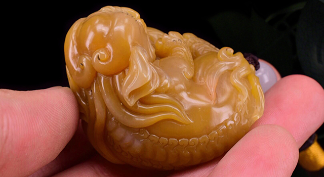 【石質】:大山石相信大家都知道,大多以黄、白、黑、红、绿!为常见,大山石石质光泽度比任何石种都要好!石种以网状结构居多!像这样整块结晶的料子是非常少见的!作品完整,石性軟,溫潤細膩,黃色通透。还是全黄结晶的,无杂无裂,非常稀有的石種!欣賞大山和懂玩大山的朋友就懂這種行內好貨,好玩的東西市場上未必是看石種,什麼田黃荔枝的。這種頂級的大山黃,它藝術色相的美,石之五德直迫田黃,比時下田黃有過之。其餘細節可以見圖。