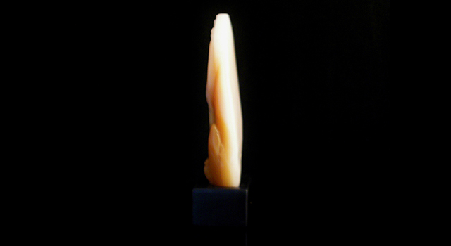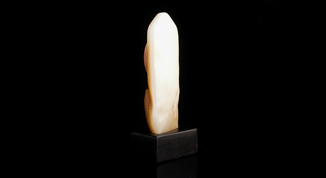 【雕工】:這雕功屬高浮雕類作品,嫦娥的家傳戶曉故事在此就不細述了。就雕功而言,嫦娥衣紋飄逸、面相豐膄圓潤,曲態玲瓏自若,衣袂轉折順暢、手上輕撥簾弄,線條柔美。出近代雕刻常月的跨張意境法,凌空座勾在月上,月下岩石崗哨,玉兔隨流雲上奔而去。從佈局構思到雕刻枝巧,都勝出一籌。雕工細膩入微,刀法流暢,這輪彎彎新月和嫦娥仙子的透瑩潤澤就了作品最好的比重點和聚焦點。從構思深度到雕刻枝巧,沒什麼話要說了。