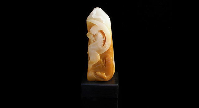 【背後典故】:這東西是敝人馬年時收來的好石頭,敝人認識一位作拋光活的美妹子,北方人,為過點好日子落草福州,呵呵。現在這種汶洋的市價行情……真的不敢亂估計了。東西和她聊了半個月吧!敝人當初看見就很喜歡,知道是難得的好東西,由於作品和石質的脫俗出塵,愛死了!幾個晚上睡不著。就是想著月宮上的嫦娥仙子呀,來來回回的聊了許久,結果還是咬咬牙,收了這東西,由於作品經過她手已許久了,已不知道作品出自那位雕刻師的手。故此就不追究出處了。