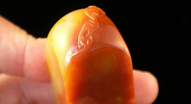 【石質】:作品屬壽山高山礦類,印材尺寸合形合格,握手很合適,無瑕疵無雜質,印頂應該可能有一穩格流雲化之,但我看不出來,光水好,石性穩定,手感細膩老結,不必保養。石頭的色相純淨明快,紅橘黃色相迷人,難得紅肉中帶黃肉,顏色亮麗嬌豔,少見的質佳絕品。紅和黃的分佈和合得當!令至作品顯得討人喜愛!印體部份朋友可以在局部圖內感受到紅黃高山那層層的紋理視覺效果,品相不錯。