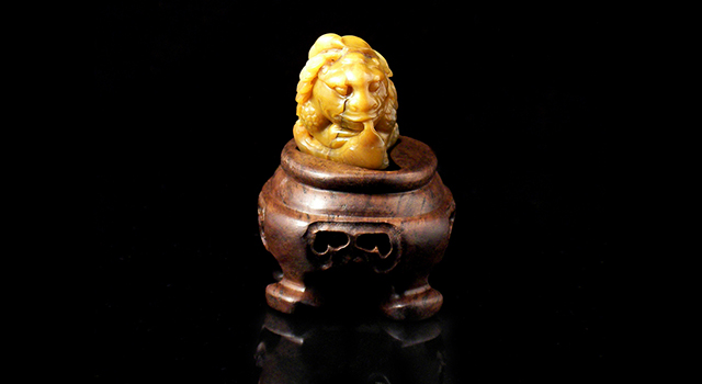 【石種】:田黃石素稱為「印石之王」的美譽,是中國特有的名貴雕刻石材。其特點是石皮多呈微透明,肌理隱現細密的羅蔔紋。質地細密溫潤,透明度高,又因產量極稀,故昔日有「一兩田黃一兩金」,後來更因佳品難覓,又有「一兩田黃十兩金」來形容其物稀價昂的程度!田黃石有白田、紅田、灰田、黑田、花田、硬田等品種。在林林總總的印石中,田黃突出地顯示出色澤、性狀的自然美,具有卓然的個性。田黃的色澤,以沈著而純淨的深黃為基本色調,這是中國傳統欣賞心理所喜聞樂見的色澤,被認為象徵寶貴。同時從質地和內在肌理上看,田黃石同時在這些方面都達到印石中最高的標準。田黃石具備性狀上的優良品質,獲得卻不易。