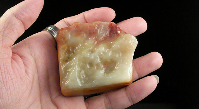 【物品說明】:敝人玩壽山石,觸撫過的石種也不少,最教敝人恩愛有加的還是芙蓉,芙蓉的美和變化色相不是一言兩語能道盡,玩久了就開始享受到和明白到前賢所說的石質之美,這種美和雕飾的藝術之美是不一樣的東西,範圍和玩石的領域也是不一樣的。君可能如敝人般初入石道受雕刻藝術所吸引,但如果兄和一定石量結個緣後就明白石質素體鑒賞之美。有其一番獨到風境,那是另一種鑒品石頭的境界。
