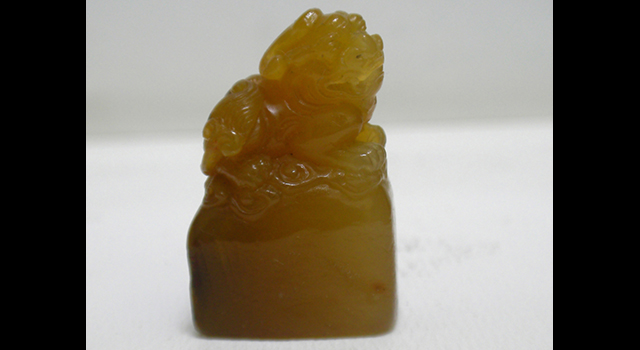【石質】:質地通透!石種像風味的田黃(有田黃相),這件雖具有田黃的特徵(皮、色、格…),但不是田黃,是常被用來混充田黃的高山黃凍,這件作品可提醒石友像田黃不見得就是田黃,石友可作為樣品,具參考價值,黃金誠可貴,田黃價更高,若為誠信故,兩者皆可拋!