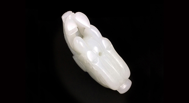 【石質】:上等新疆禾田白玉,籽料料心,羊脂精品把件,籽料雕刻而成,料潤肉細,質地細膩慎密,潤度一流,油潤性十足,上手滋滋出油,白度一級,脂白級別,脂粉熟糯,溫潤絲滑,油潤性十足,細度一級。作品結構縝密,過燈難見結構,緻密度非常好,玉質乾淨,無紋無綹,無棉絮,難得的三好的精品籽料,上等精料!