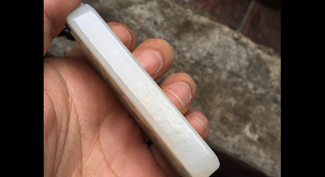【石質】:這塊玉乾淨得很,不說工、這裡是否好玉主要還是要看玉質,熟糯白、白度好、肉很細,油份好,玉質細膩油潤,摸起來很滑手,玉質結構以及潤性都很成熟,油份和玉質表面會很潤很滑,籽料真皮!牌子側下角那皮,皮比較薄,畢竟皮子千變萬化,如果隨便去肯定,根本不可能的,除非自己切的資料,要知道皮,建議去刷刷洗洗、看會不會掉就知道了。器形大件無裂無傷,沒有半點突兀,這份醇厚的表裡如一感,我相信會博得大家的喜歡。大小正好適合佩戴!高端大氣上檔次!