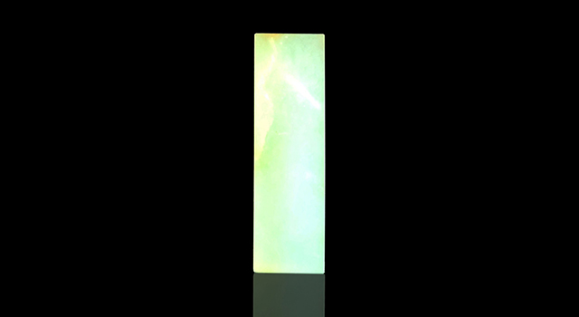 【石質】:青田北山晶非常稀有,色彩清雅,石質潤透,質地細膩透明,瑩潔溫潤,石質潤透如冰,難得沒有雜質沙丁。現在這樣的小品都是極難遇見了,磨出這樣的章也是極其不容易,完好無裂,一流韻味,別具一格的青田石中的“軟寶石”,可遇不可求!