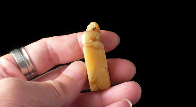 【石質】:這個田黃感覺挺好。黃味真不錯。以小堂角度來看,它比白田更偏黃一些,應該更黃,是鷄油黃田黃。石頭里面蘿蔔絲紋理明顯。石皮和紅根等等也開門。印章質地通體溫潤凝膩,滑不留手,手感特佳,由於高度足夠,所以握手的感覺挺好。由於現今田黃章料極為難得稀缺,是一個文化人期待能夠擁有的田黃章。凡得一印,前人必慎待之。能得一塊田黃實屬不易。人生至此生命裡它是值得收藏的,絕對收藏投資佳品。