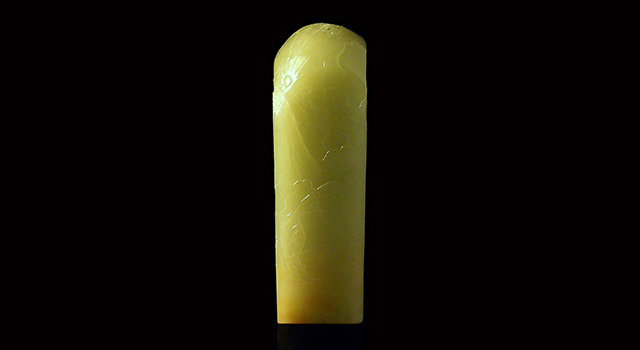 【石質】:作品為老性壽山石結晶的月尾綠,以壽山石來講綠色的品種絕少,月尾綠是福山獨有的綠,作品質地很好,印體部份色澤上的黃綠過渡得很自然,色很好很潤,溫膩脂澤,掘性料,整件印章手感沉,蠻大材。正宗的壽山石(非市面出現的那種綠色外省石,現在市場很亂,我看見時下許多石商把印度綠,上架大叫大賣,而且冠上壽山的名字,套什麼壽山月尾綠,壽山艾葉綠…..標個靚價格,張大眼說假話還理直氣壯的!),許多新人不懂給套了還不知道,但東西騙不了咱們舊玩家。小堂東西踏實四海任縱橫的,作品有麥子老師作品已落款。