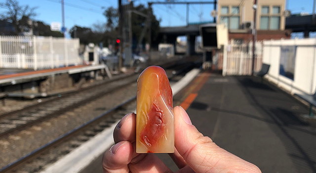 【背後典故】:東西是從福州好朋友處納回來的,我玩石從不套大師捧名家,一切以石質和藝術性為首要考慮(當然也要考慮腰間錢夠不夠深……呵呵),所以我收來時全憑眼力和個人對美的感覺,作品沒下款也沒追問出處,直至某個時期,我和新主人好朋友聊開,才知道作品是比較低雕的名家輩,難怪作品刀路如此的好,難怪我當時上手就喜歡此物…… 自捧自吹的話就不多說了!由於福州朋友和作者有交情,如此好東西,就順水人情,答應改天為我跑一程,為我追加合影、拓片、落款簽名和配一個好盒子吧!畢竟當年這東西我抱走行比較急促,什麼也沒有,好劍也應該有個好劍套,才襯配得當的,當日舊報紙隨便卷著帶去澳洲,也實在有點兒那個的說不過去! …… 好,帶回香港後,帶上去為它裝裝身也是應該的。福安!