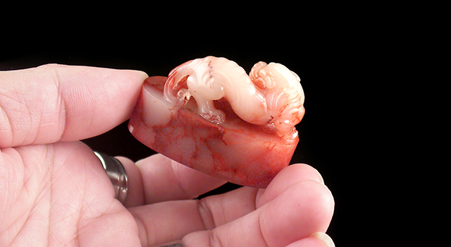 【背後典故】:好的壽山水洞桃花越來越小了,這東西難得好物,不得不好好溫柔對待。吩咐心靈巧手的藝娘好好細磨一下,要她們用牙簽包著水磨沙紙,由1000目、2000目、再到5000目好好為”它”全身每個細微部份,裡裡外外細磨一下,女兒家耐性好又細心,這種活費神又傷眼,我們就走去看看山看看海拍拍照好了,…… 回來後一看,果然耳目一新,玻璃質感又出來了,神彩飛揚。馬上嚷朋友好好為我補點工錢,到禽始皇購包鳳瓜、到菜市場購點妃子沖水,讓藝娘慰勞一下,補補手力補補眼力,於我用心的吃客和跑腿,本君是不會虧待的………