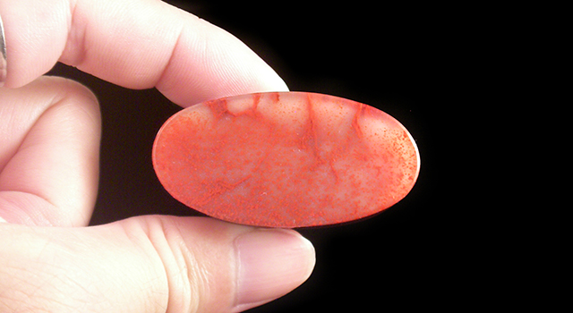 【石種】:水洞桃花,又稱桃花凍、桃花水,又稱(浪滾桃花)。石質微透明,色多白、黃中帶紅點。在白色透明體中含鮮紅色細點,或密或疏,或深或淺,濃淡演映,光彩奪目。其狀如片片桃花瓣,浮沉於清水之中,嬌豔無比。或似三月桃花散於石上,今人愛不釋手。此石產量甚少,價格頗昂。清毛奇齡(後觀石錄)雲:(石有名桃花片者,浸於定磁盤水中,則水作淡淡紅色,是其像也。或曰如釀花天,碧落濛濛,紅光瞭然,宜名桃花天。舊名所稱桃花雨後,霽色蘢蔥。)又云:(石類水色中有紅白花片,隨水上下。)