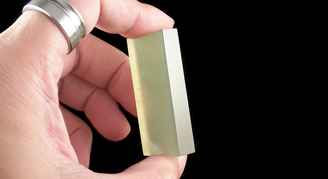 丹東綠晶,非常稀少,大多有裂和內爆,就算完好,也多內部多含霧狀或線狀黑細點,取章極難,石性結晶透徹,也稱丹東綠玻璃,丹東純水綠、丹東玻璃綠。石性硬度略高、通靈富光澤,堅韌,和湖南晶硬度差不多,質地細膩,刀感爽脆,石材穩定,容易保養!屬篆刻收藏佳品。