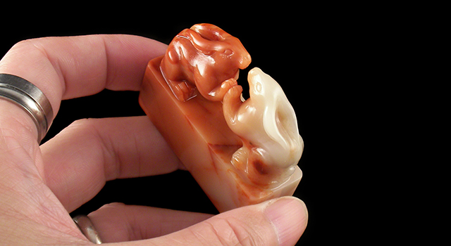 【石質】:壽山老性芙蓉石,石種石。此件壽山芙蓉石,質地溫潤緊密,細嫩妍美,神彩煥發,花紋俱佳,其紅處妖嬈,絲紅獨具特色,章體外表光滑明亮凝潤,凝結潤雅,質細地凝,入手潤臘,備受藏家喜愛,質地其實照片基本看的出、作品無瑕疵具體看圖、其他請君自鑒賞折。