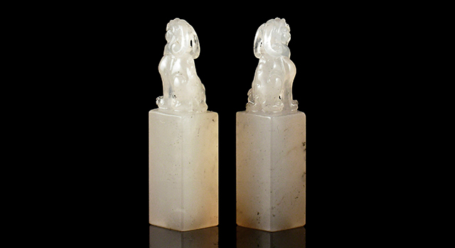 【物品說明】:傳統對章,無論選料、工藝、器形都分外講究,需要利用整塊石料鋸切出兩枚同樣造型的方章,配對而成對章,不但印材的質色相同,而且紋理也能連成一體,對章難度高,一個是材料難,需要夠大的材料對切。不容易。另外一個是工藝難。薄意、淺浮雕需要兩方呼應。鈕頭更難。另外一方需要在反方向上無論高度,形狀大小均要相同。這需要非常深的功力。所以這樣的對章很難見到。一對上品對章,勻稱、適宜。是一種契合、一種共鳴。所帶來的美感是單枚對章所不能代替的。精彩的對章落入藏家之手後一般不輕易再放出。下面小堂分享一些敝人所珍玩收藏過的對章供石友參考研究!
