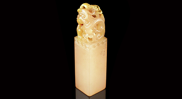 【雕析】:三螭戲珠鈕正方章