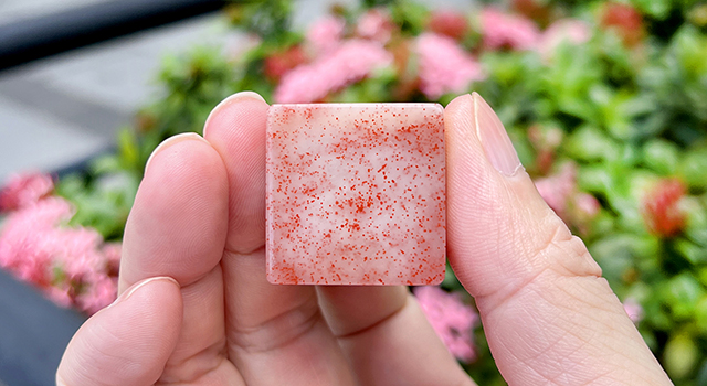 【石種】:水洞桃花,又稱桃花凍、桃花水,又稱(浪滾桃花)。石質微透明,色多白、黃中帶紅點。在白色透明體中含鮮紅色細點,或密或疏,或深或淺,濃淡演映,光彩奪目。其狀如片片桃花瓣,浮沉於清水之中,嬌豔無比。或似三月桃花散於石上,今人愛不釋手。此石產量甚少,價格頗昂。清毛奇齡(後觀石錄)雲:(石有名桃花片者,浸於定磁盤水中,則水作淡淡紅色,是其像也。或曰如釀花天,碧落濛濛,紅光瞭然,宜名桃花天。舊名所稱桃花雨後,霽色蘢蔥。)又云:(石類水色中有紅白花片,隨水上下。)