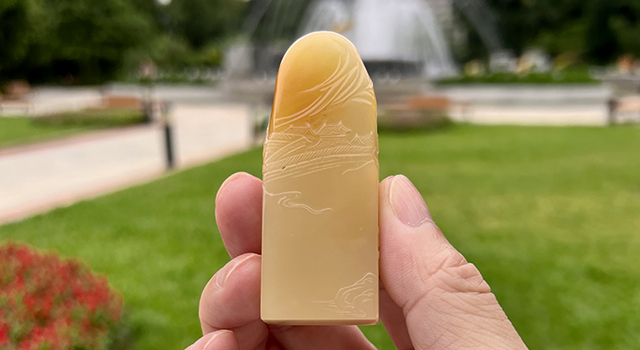 (已讓)壽山石紋洋晶-薄意蝶戀花日形章