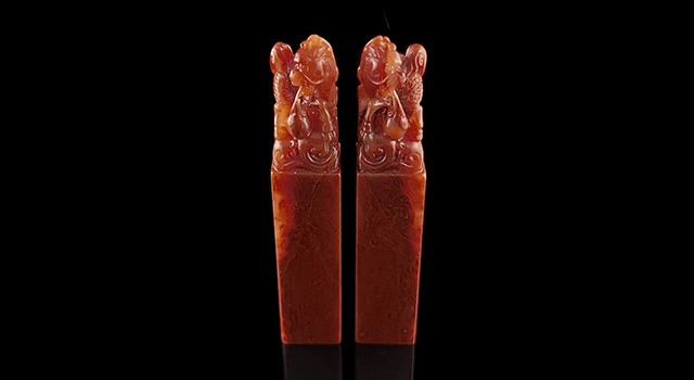 【刋登說明】:傳統對章,無論選料、工藝、器形都分外講究,需要利用整塊石料鋸切出兩枚同樣造型的方章,配對而成對章,不但印材的質色相同,而且紋理也能連成一體,對章難度高,一個是材料難,需要夠大的材料對切。不容易。另外一個是工藝難。薄意、淺浮雕需要兩方呼應。鈕頭更難。另外一方需要在反方向上無論高度,形狀大小均要相同。這需要非常深的功力。所以這樣的對章很難見到。一對上品對章,勻稱、適宜。是一種契合、一種共鳴。所帶來的美感是單枚對章所不能代替的。精彩的對章落入藏家之手後一般不輕易再放出。下面小堂分享一些敝人所珍玩收藏過的對章供石友參考研究!