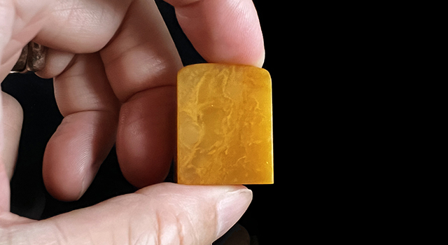 【背後典故】:鄙人早年,認識一位設計師行家,也是書法的愛好者,也是鄙人所遇的金石玩家、和佛法雙豐的好朋友,鄙人雖和江兄弟聚面時間不多,但每次聚面言談間、對人生看法理解很相近,是位性相近習相宜的朋友、日前江兄弟會橋居台灣一段時間,知遇者難求,小堂沒有伯牙之能、也沒有美琴相贈、還好小堂床下,還有一些破破爛爛見不得人的碎石爛瓦幾塊、就抽這方巴林福黃凍、學習伯牙高義、贈給這位將過去台灣的設計師好朋友吧……、藏品已贈、謝絕詢價!福安。