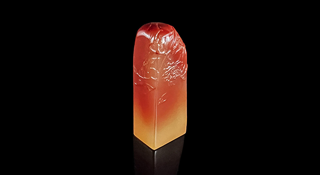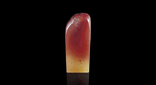 全章色效如櫻桃釀的酒紅色,紅的肉地部份非常醉人,紅豔者如瓜肉,石質肌裏透凍地水質、光潤通靈,水頭非常足,如此好的質地與顏色,讓人不得不感歎來自礦脈之心眼,它是最精華的材質,其應是吸取了整座大山的精華而就。這作品石性穩定、紅黃結晶體質優,溫潤無比,玻璃質感、反光感晶瑩透剔,那真是難得又讓人陶醉。色澤明麗高雅,顏色亮麗嬌豔,對比分明,晶瑩通靈,極為少見的質佳絕品,就是因為如此的極致頂好,實物很精緻,它的精彩不會給田黃比下去,令鄙人愛不釋手。這種登堂人室的顏色和質地列入收藏級一點也不牽強、其他具體請君見圖自鑒好了。