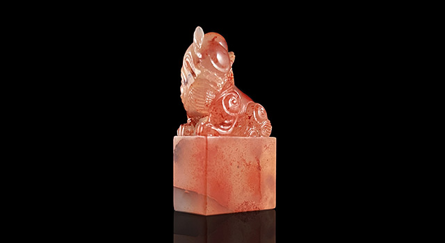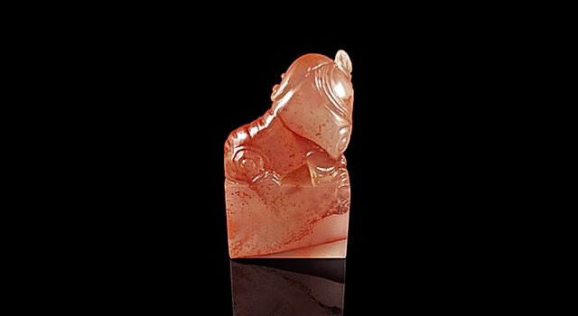 (藏珍)壽山高山桃花凍-獅子鈕日形章(姚仲文)