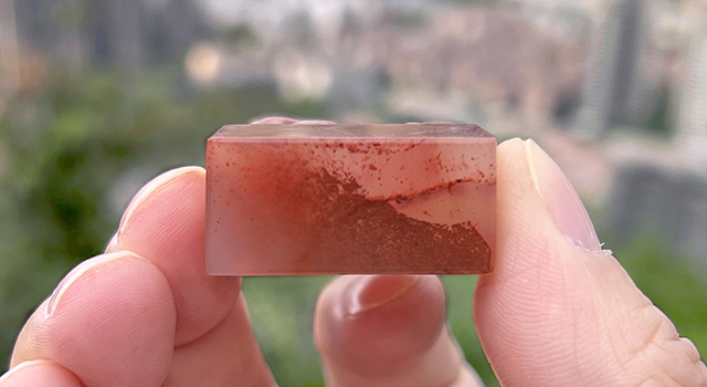 【石種】:水洞桃花,又稱桃花凍、桃花水,又稱(浪滾桃花)。石質微透明,色多白、黃中帶紅點。在白色透明體中含鮮紅色細點,或密或疏,或深或淺,濃淡演映,光彩奪目。其狀如片片桃花瓣,浮沉於清水之中,嬌豔無比。或似三月桃花散於石上,今人愛不釋手。此石產量甚少,價格頗昂。清毛奇齡(後觀石錄)雲:(石有名桃花片者,浸於定磁盤水中,則水作淡淡紅色,是其像也。或曰如釀花天,碧落濛濛,紅光瞭然,宜名桃花天。舊名所稱桃花雨後,霽色蘢蔥。)又云:(石類水色中有紅白花片,隨水上下。)