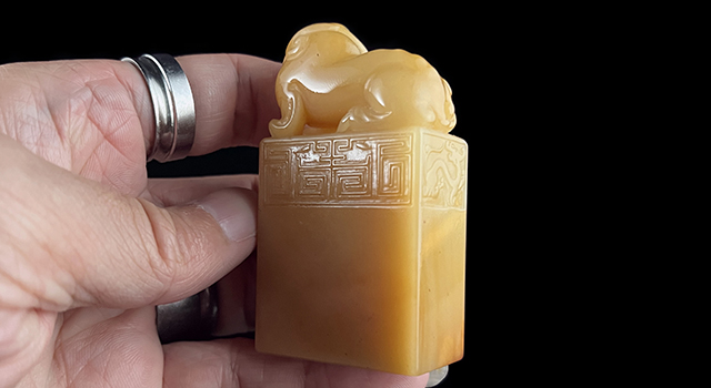 (已讓)壽山石花羊洞黃芙蓉-瑞獸鈕日形章