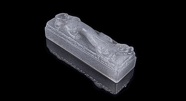 (已讓)壽山石天藍凍-古獸螭虎獻瑞鈕長方章