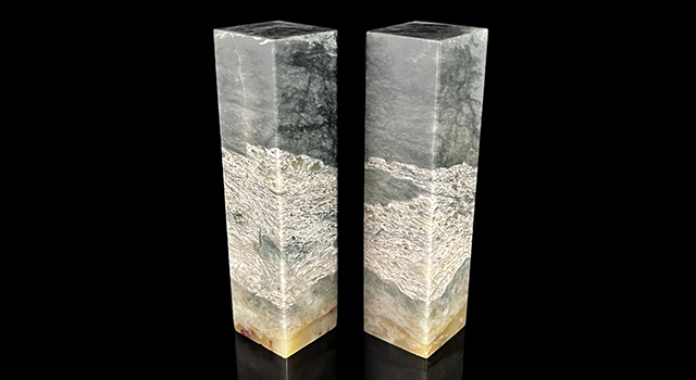【雕功】:傳統對章,無論選料、工藝、器形都分外講究,需要利用整塊石料鋸切出兩枚同樣造型的方章,配對而成對章,不但印材的質色相同,而且紋理也能連成一體,對章難度高,一個是材料難,需要夠大的材料對切。不容易。另外一個是工藝難。薄意、淺浮雕需要兩方呼應。鈕頭更難。另外一方需要在反方向上無論高度,形狀大小均要相同。這需要非常深的功力。所以這樣的對章很難見到。一對上品對章,勻稱、適宜。是一種契合、一種共鳴。所帶來的美感是單枚對章所不能代替的。精彩的對章落入藏家之手後一般不輕易再放出。下面小堂分享一些敝人所珍玩收藏過的對章供石友參考研究!