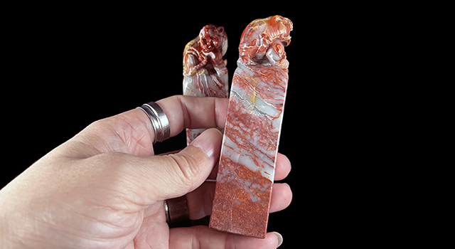 【背後典故】:這東西是澳洲朋友他爺爺的舊藏,澳洲朋友轉售給我,所以我為他覓一個好主,背後沒有什麼驚天動地的故事。我認為好東西應該要重視….. 不應該隨便處理,我相信石頭有他自己的靈性,自己會配對一個他應該擁有的主人和身份…… 某天,星加坡一位朋友要我推薦一些好東西給他,我就推心建議這對優質的正對章……,結果…… 很滿意……. 故,藏品已讓,謝絕詢價,福安。