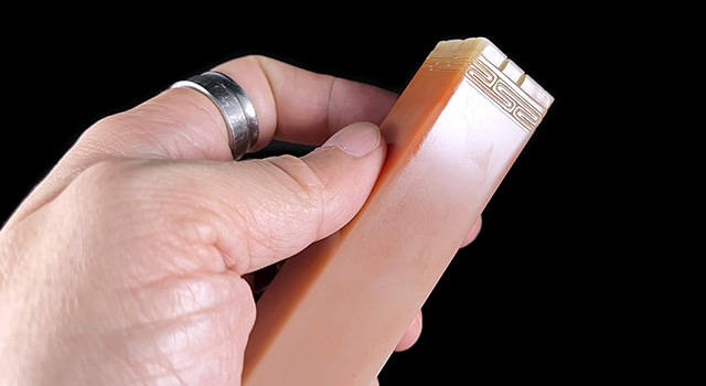 【雕工】:作者博古印章,雕工非常細緻高雅,得自然之妙巧色施藝,印鈕上方巧取淺黃色部分,施藝雕刻葵龍紋博古紋飾,寓意吉祥,構思奇逸。博古凹溝槽位雕工婉轉細長,雕工精细,工藝行內稱為”肥腸”。印環博古紋飾,線條流暢、文與質相映,雕功簡鍊而高雅。使得整體章料配合無間又有君子之美,有文房雅氣。工與料俱佳,品相難得。十分好看。此類博古在多本出版品中列為精典。