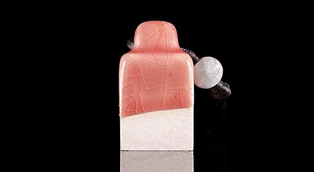 【石種】:陶瓷印,中國傳統印章的一種,也是現代印章的一大流派。 相對於以純天然石材,如壽山石、青田石等,陶瓷印為載體的傳統中國印章,繼承大中華舉世聞名的古老瓷器藝術,以瓷土(高嶺土)為原料,完全人工製作而成的印章紐體及其獨特治印方法,一種當代新興的中國印章藝術。 瓷印的製作難度較大,工藝較複雜,要經過制坯、雕鈕、素燒、刻字、上釉再經預定的溫度入窑燒造。 陶與瓷是兩種不同的物質,一般在1200度以下的稱陶,而“瓷”要在1200度以上高溫燒造後它的胎質才能所謂的“瓷化”,瓷在敲擊時會發出清脆的金屬聲,在燒制瓷印時,溫度越高,越容易扭曲變形,凹凸不平。