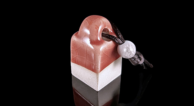 【雕饰】:紅色冰裂紋鼻鈕正方章