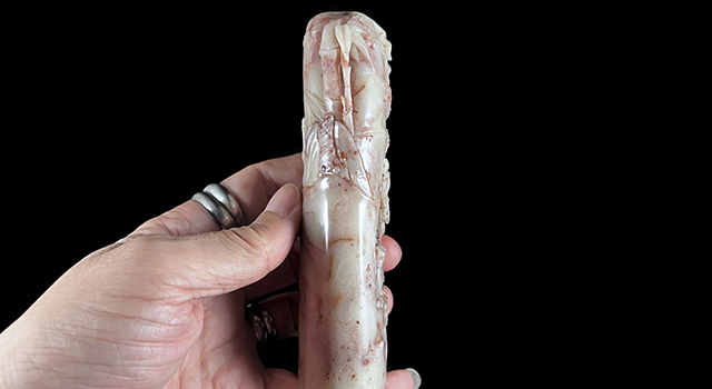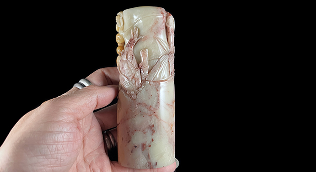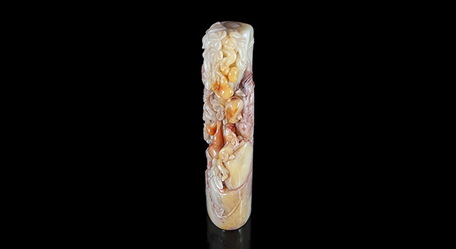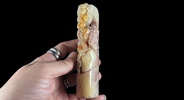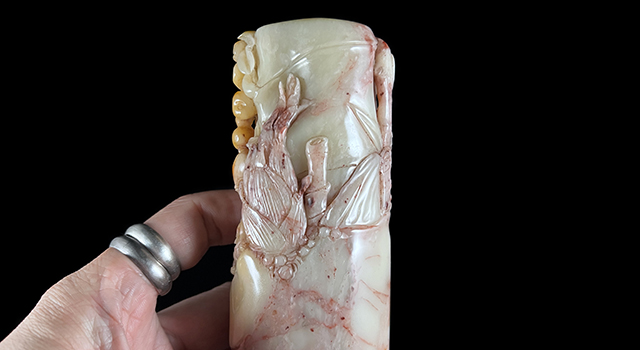 【背後典故】:這件東西是某位收藏家的舊藏品,90年代藝人的作品,由於年代久遠,前主人已經不知道當時是誰創作的了,而且那個年頭也和現在不同,雕刻家下款這個概念還不是那麼流行,前主人當時只是在乎玩石的樂趣,玩得比較純真,和現在壽山石的玩家思路不一樣。…… 這東西是受人所托的,某位朋友手上沒有拿得出手的優質上品旗降石大印,成為了他收藏路上的憾事,每次見面時談起,朋友他也希望我為他物色一下能傳家的美物,經過大約一年時間吧,我見他的堅持和信任,才為他把關一下…… 知道某位舊藏家有一方”航空母艦”尺寸的旗降,質優工美。這位朋友視我為知遇,我就斗膽為朋友做個說客吧,向老藏家說個原由…… 結果…… 故,…… 藏品已讓,謝絕詢價,福安!