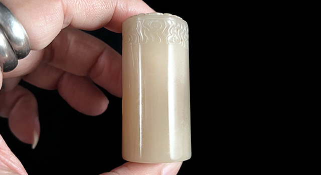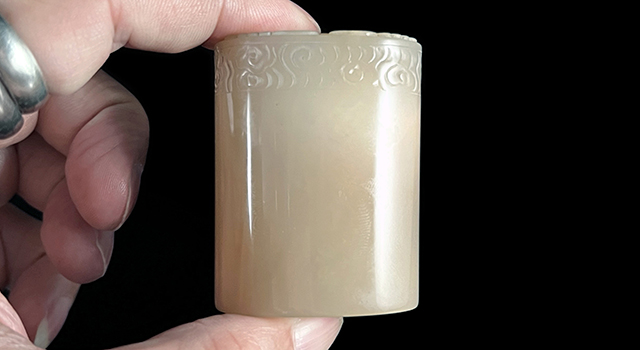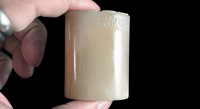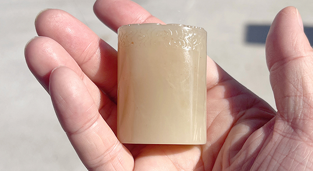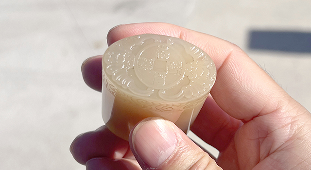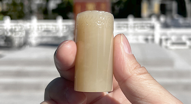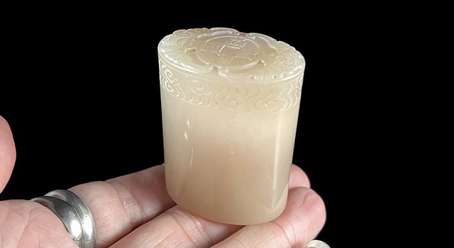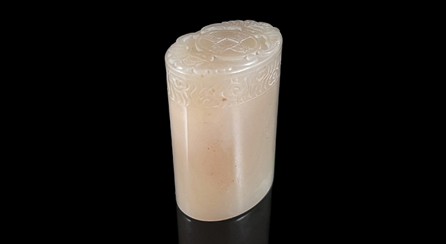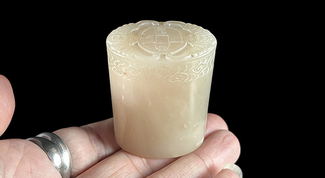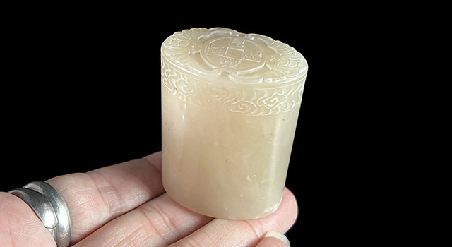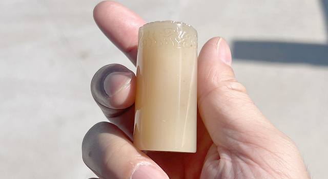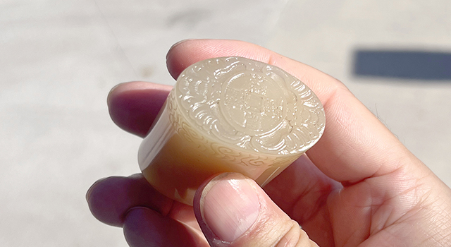 【背後典故】:香港某位老先生交過來舊藏的老料美物,要我為他覓一個好主,背後沒有什麼驚天動地的故事。 …… 這裏說說石頭吧,這方東西他和白高山有點相似,但不同的地方是,白善伯石質更為細嫩,他有一種膩的感覺,蠟質感更強更溫潤。雖然通透度和白度不及高山白,但印體這種微微帶有肌肉血氣色澤(黃味中帶粉),十分能親近人,作品今時今日已是難得之物,有味道的舊物件看上去巧妙精致,足夠吸引真正藏家的瞩目,所以鄙人邀請了”他”陪我走一程山水之樂。
