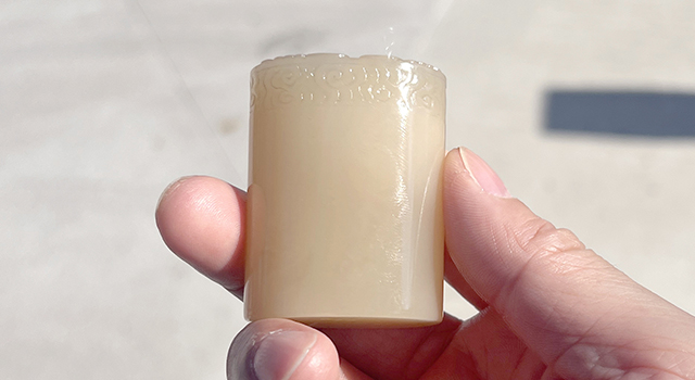 【石質】:作品是60年代的善伯洞,難得方章成材,印製端正。此石石質凝潤質優,質感極佳,帶有善伯花生蛋糕的特徵,石肌理色純白中帶黃氣,已經盤玩部到包漿,善伯的白和高山白不一樣,有點那種糯糯的肌理蠟質感,遠看有點更近人氣的感覺,石質質感沉穩、凝润醇厚、外表光滑平穩,明潤油順、入手细腻光滑、盤起來溫溫柔柔的,品相佳、不管從哪個角度看去,别有一番味道。整件作品沒有砂丁、是件值得收藏的佳品。