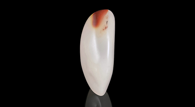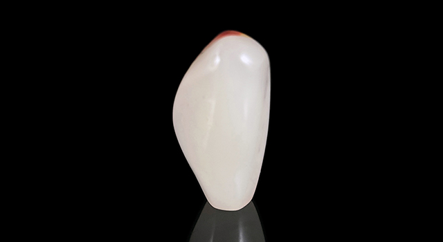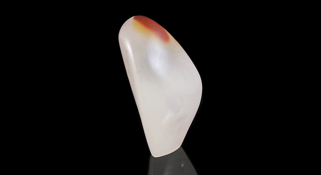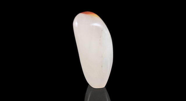 【石質】:作品是壽山荔枝洞原石,屬於老東西再活化,全器火氣盡退,這老荔枝三彩,局部帶紅橙黃巧色,紅橙黃三彩過度自然,視覺非常奇妙,底子潔白明亮,石質冰糖地,純度高,頂好的質地,一流的貨色,算是萬里挑一的品質,作品手感光滑油潤、色味佳,素體天然無修,尺寸器型飽滿,適合把玩,隨手把玩身心爽透很好。石頭肌理玻璃底微微帶絲,當中有少許荔枝的針,由於當年施藝薄意,裏面有道肉眼難辨的微微小化裂,已穩定不指出根本肉眼不容易察覺,可遇不可求的精品。荔枝洞是國石代表的石種,有石中妃子之美譽,已經絕礦,石不能言晶晶凍凍最可人,值得入手,收一件少一件。