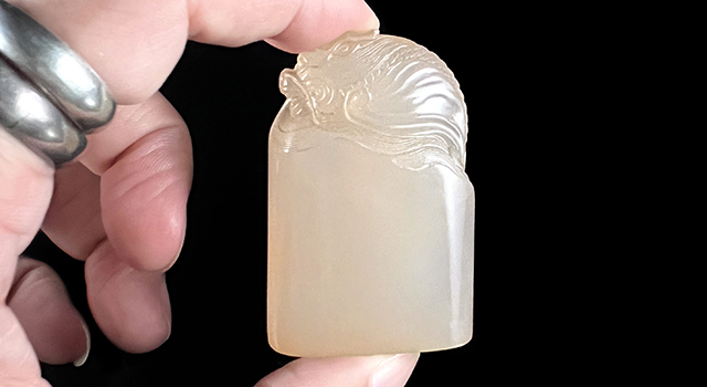 【背後典故】:東西由老藏家傳過來,我對這件作品特別高看一眼,因為有藏玩坑头晶的朋友都会知道,此類料成章材的非常難,實話實說壽山坑頭晶出礦都是一片片,小小的,一般暗色居多,純潔者很少,而且雜質多。晶瑩透徹真的很困難,市場上已消聲匿跡多年,鳳毛麟角,現在的坑頭晶都是陳年舊物,早年流傳下來的,市場幾近消聲匿跡。現在竟然能有緣上手一枚印章,東西年代感十足,作品成尺寸,實在談何容易,東西小堂不多說了,其他細處請君品析。