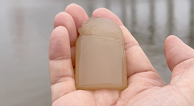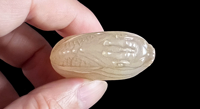 【石種】:坑頭晶是壽山石名品之一。坑頭石中,凡石質透明瑩澈如水晶,稱為“水晶凍”,又名“晶玉”。常見有白、黃、紅三種顏色。白色者往往於純潔中有粒點粟起,俗稱“虱卵”。高兆《觀石錄》稱:“白玉膚裏,微有粟起。”肌裏有棉花狀細紋,名“白水晶”。黃色者,明如杏黃,間有紅筋,名“黃水晶”。紅色者,豔如紅燭,名“紅水晶”。水晶凍主要產於坑頭占山水晶洞,是坑頭石的上品。其透明靈澈處可以“隔石觀物”,“若玻璃無阻礙”。