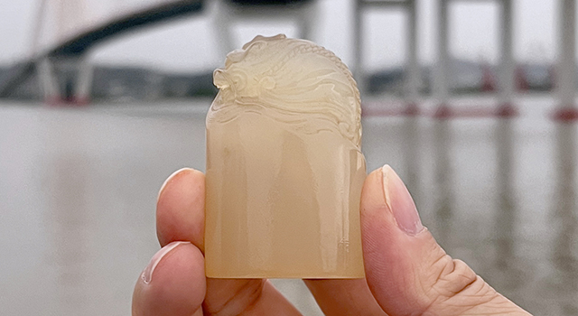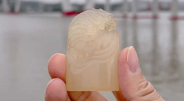 【雕工】:作品是福建東門派傳統雕刻風格,圓雕類作品,風格承傳清宮庭餘韻,若果有研究盛清印鈕雕刻風格的高端玩家,可以在故宮遺物的記錄資料裏窺見有一方坑頭晶鰲龍橢圓章實實在在呈現這種技法法度,作品幾乎一樣,包漿味一樣,只是印身再高少少…… 這種鳌龍印鈕表飾,作品因材施技,匠心可見,雕工細膩圓潤,上手盤玩非常樸順,東西掌中翻騰滾動稱心滿意,鳌龍吐水翻浪,鳌龍下方水浪翻滾,浪滾胸湧。浪花用開絲去表現出鰲龍騰浪之勢,水浪拉絲齊整,每根浪絲弧度旋轉自然,線條疊加,流暢簡潔,內容豐富,精細處功力水準一覽無遺,肇自然之性,神韻十足,見之令人心生歡喜,此件適合對工有絕對要求及有鑒賞能力的高檔玩家。