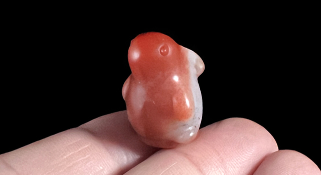 【石質】:作品是壽山石,屬於一方結晶芙蓉,質地紅白交錯,油性佳,玻璃光,做功精美,特別誘人,質地溫潤,可可愛愛。其它就看圖吧,請君品析。由於免費贈送之物,不作過多敘述,大家看圖自鑒。